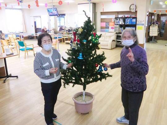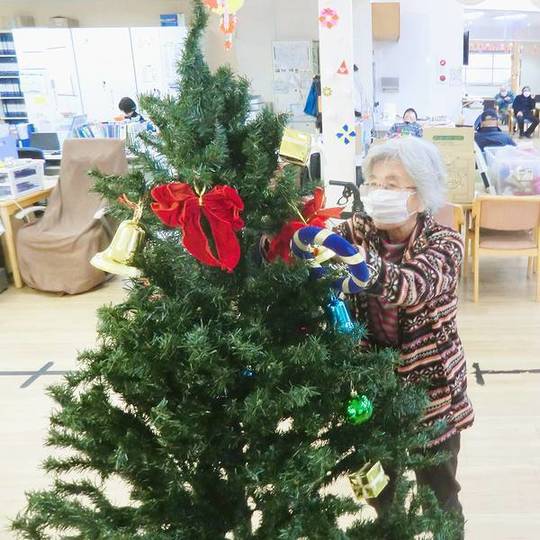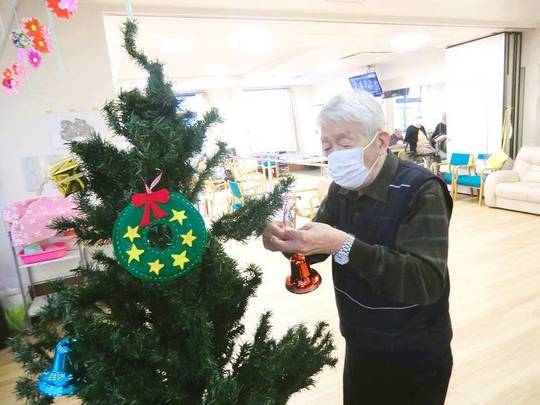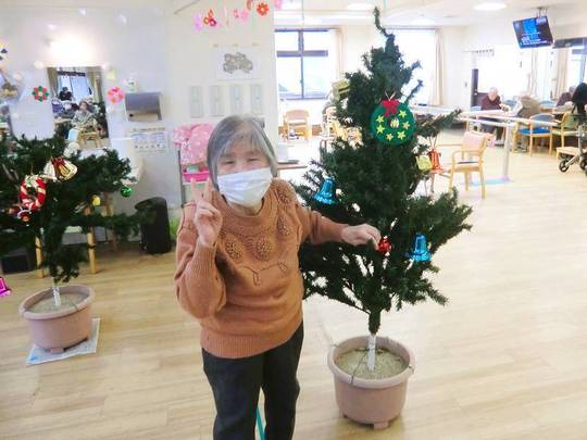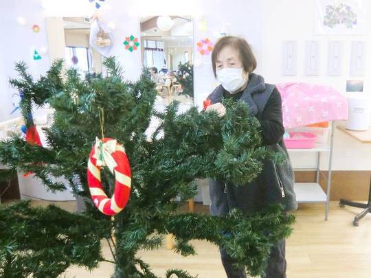 「昔は子どもたちと飾ったもんや」「出来上がるのが楽しみや」などと、懐かしい思い出話をしながら、色とりどりのオーナメントを楽しみながら飾り付けている利用者様の姿が印象的でした。