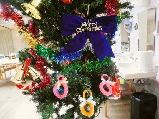 完成した作品は皆様にお持ち帰り頂きました。また、つどいの看板とクリスマスツリーにも飾らせて頂きました。
