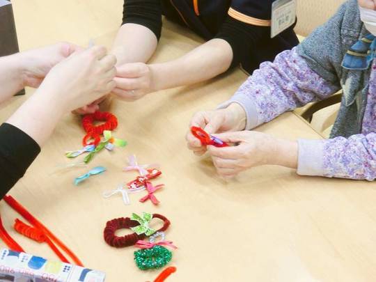 レクリエーションの時間に手芸を行い、利用者様に手のひらサイズのかわいいクリスマスリースを作って頂きました。
