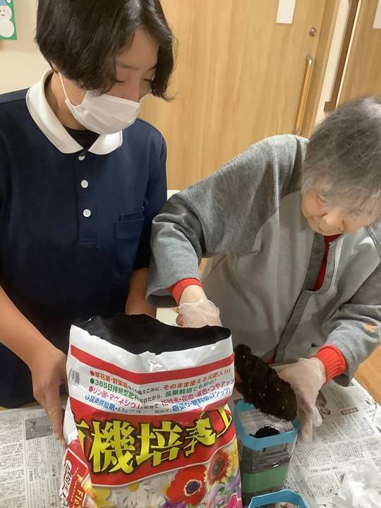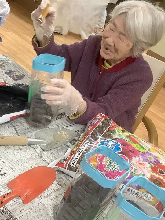 てとて加古川弐番館では、2回に分けてペットボトルに大根の種を植えました。