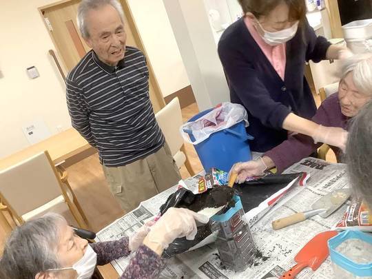 ペットボトルに石や土を入れたり、皆様が力を合わせて作業されていました。