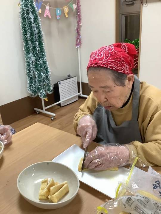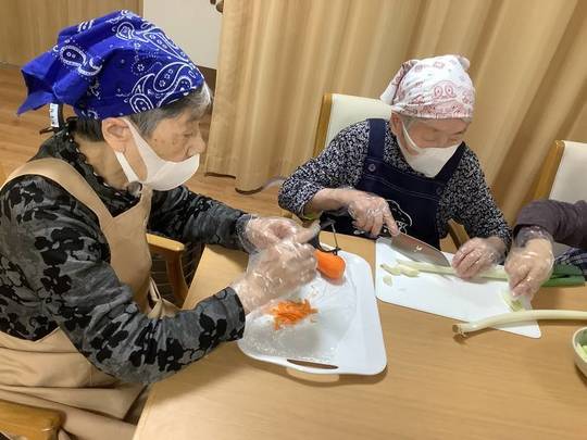 野菜を切るところから入居者様にお願いしたのですが、普段どちらかというと控えめな性格の方も「何でも持ってきて」と嬉しそうに調理してくださっていました。