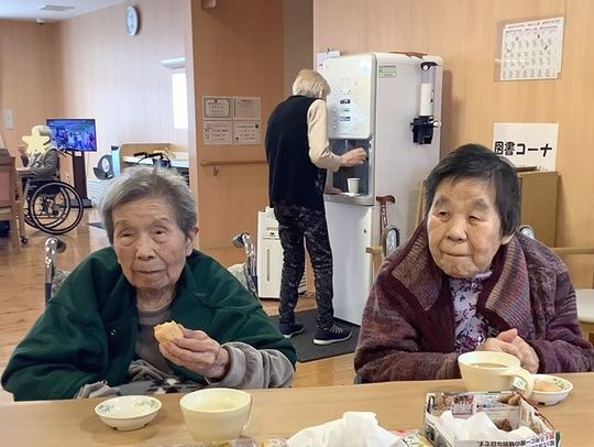 また、おまんじゅうに“福”と入れられているのをご覧になられて、「見た目がかわいらしいなぁ」と、にこにこと召し上がられている入居者様もいらっしゃいました(*^^)v